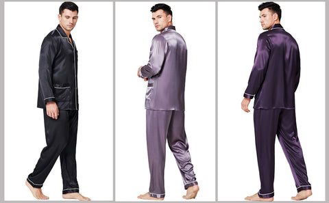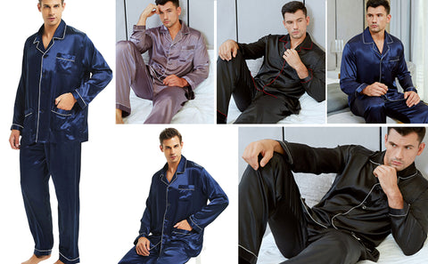 LONXU Mens Satin Pajamas Set Button-Down Long Sleeve S~4XL