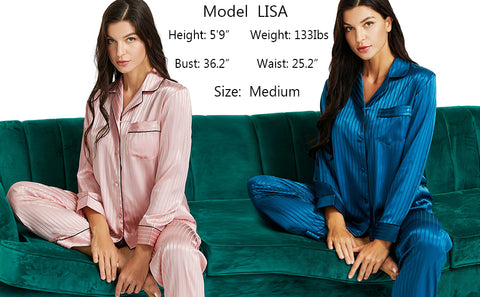 LONXU Womens Silk Satin Pajamas Set Button Down Sleepwear Loungewear XS~3XL